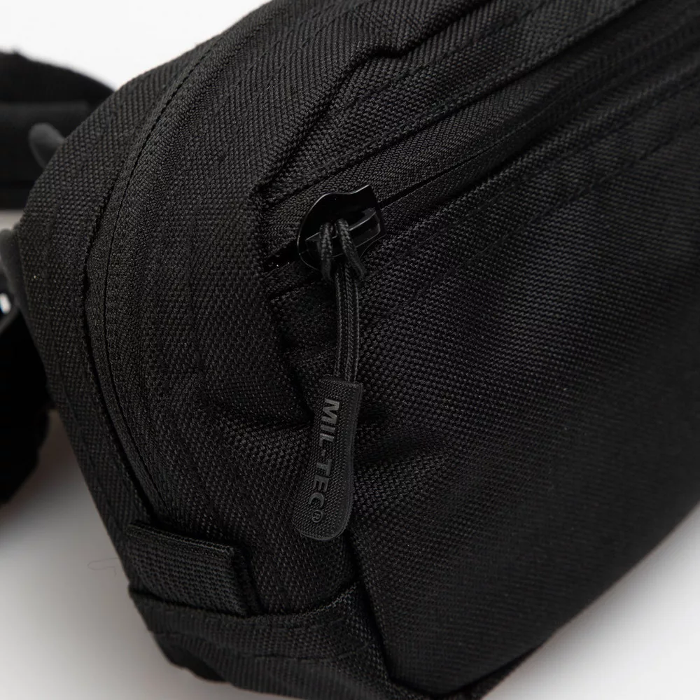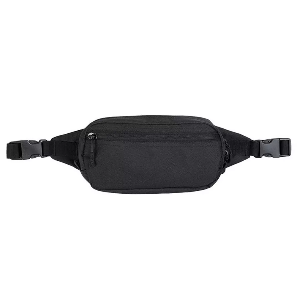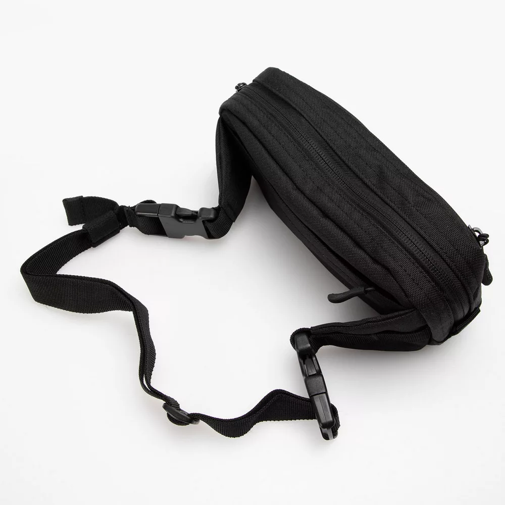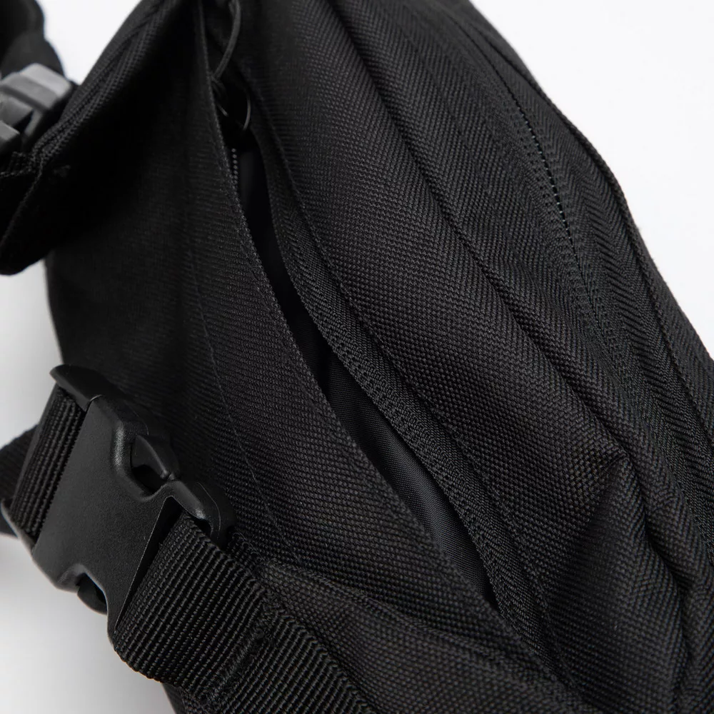 Az állítható csípőpánt két csúszó csattal könnyen méretre igazítható, stabil viseletet biztosít mozgás közben is. A 100% poliészter anyag PVC bevonattal készült, amely növeli a tartósságot és ellenállóvá teszi a táskát a külső hatásokkal szemben.