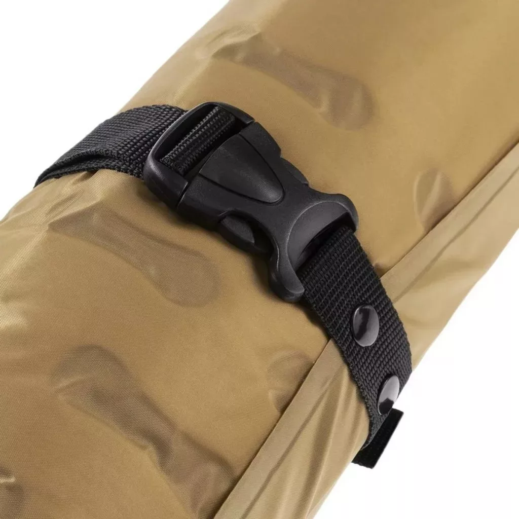 A PVC-bevonattal ellátott poliészter külső réteg vízlepergető, így a matrac nem ázik be, és ellenáll a nedves, egyenetlen talajnak is. Használat után könnyen leereszthető, feltekerhető és kis méretűre csomagolható. A mellékelt hordtáska megkönnyíti a szállítást és a tárolást.