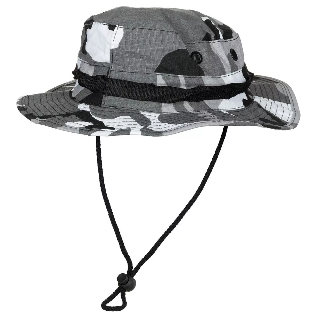 A többszörösen varrott karima stabil tartást biztosít, miközben véd a napsütés ellen. A kalap körül futó hurkok lehetővé teszik álcázó elemek vagy kisebb kiegészítők rögzítését. Az oldalsó szellőzőnyílások hálós betéttel gondoskodnak a megfelelő szellőzésről.