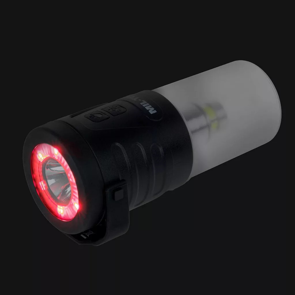 A lámpa két külön fényforrással és összesen 6 üzemmóddal rendelkezik, köztük piros fény funkcióval, amely segíti az éjszakai tájékozódást anélkül, hogy elvakítana.