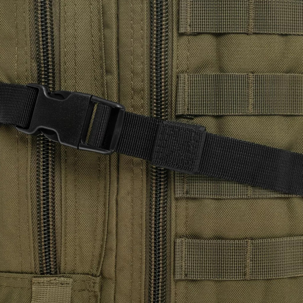Az oldalsó kompressziós hevederek segítenek a csomag stabilan tartásában, míg a MOLLE kompatibilis rögzítési pontok lehetővé teszik további zsebek és kiegészítők rögzítését. A tépőzáras belső rekesz ivótasak (hydration pack) elhelyezésére is alkalmas.